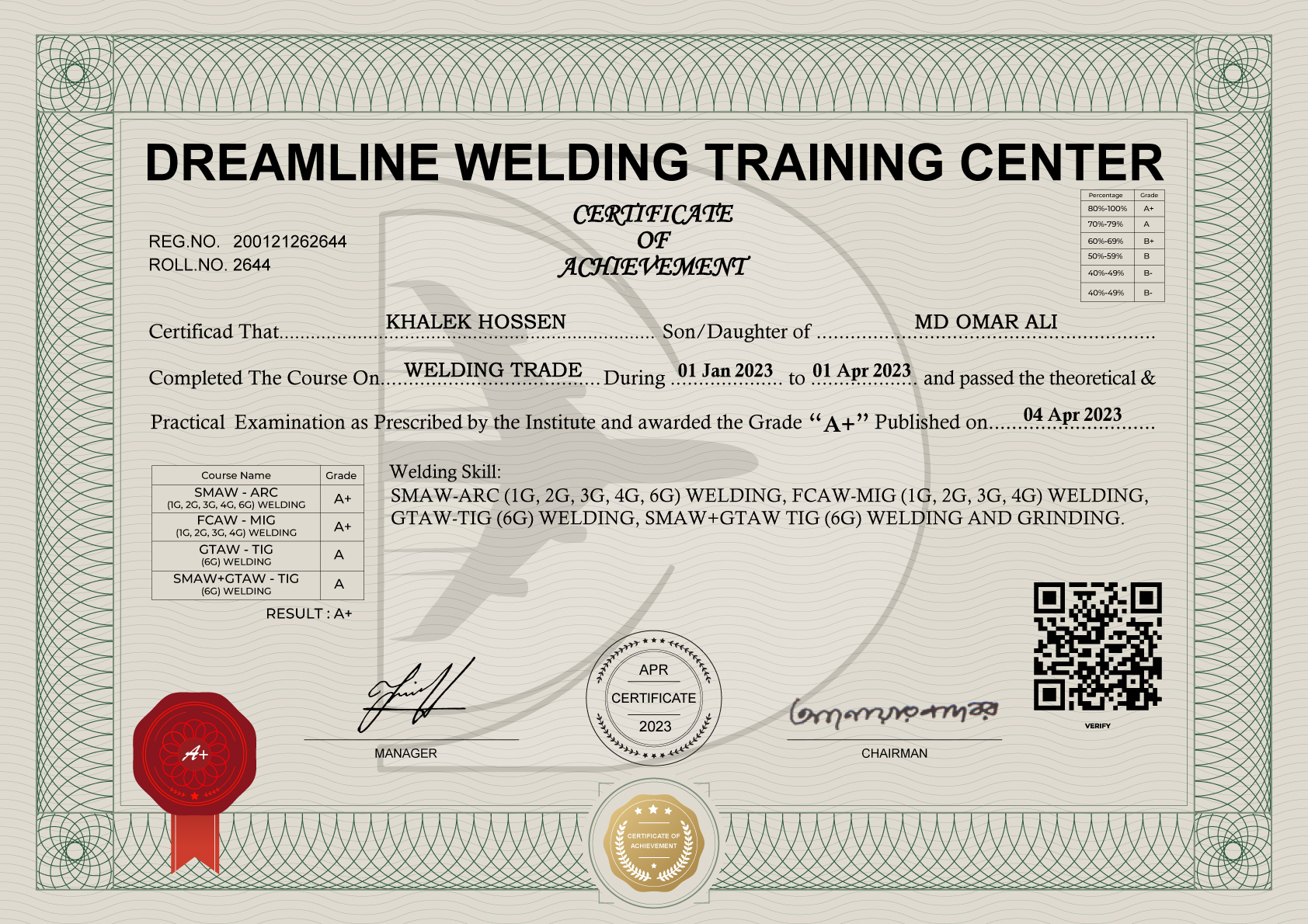 SKILL : SMAW-ARC (1G, 2G, 3G, 4G) WELDING, FCAW-MIG (1G, 2G, 3G, 4G) WELDING,