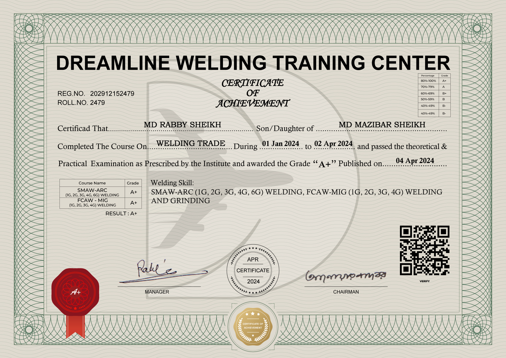 SKILL : SMAW-ARC (1G, 2G, 3G, 4G) WELDING, FCAW-MIG (1G, 2G, 3G, 4G) WELDING