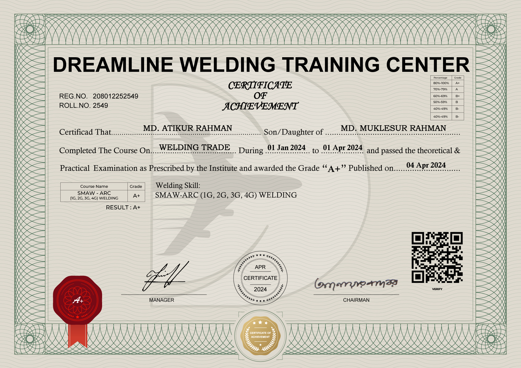 SKILL : SMAW-ARC (1G, 2G, 3G, 4G) WELDING