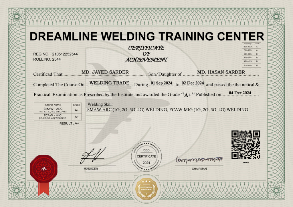 SKILL : SMAW-ARC (1G, 2G, 3G, 4G) WELDING, FCAW-MIG (1G, 2G, 3G, 4G) WELDING
