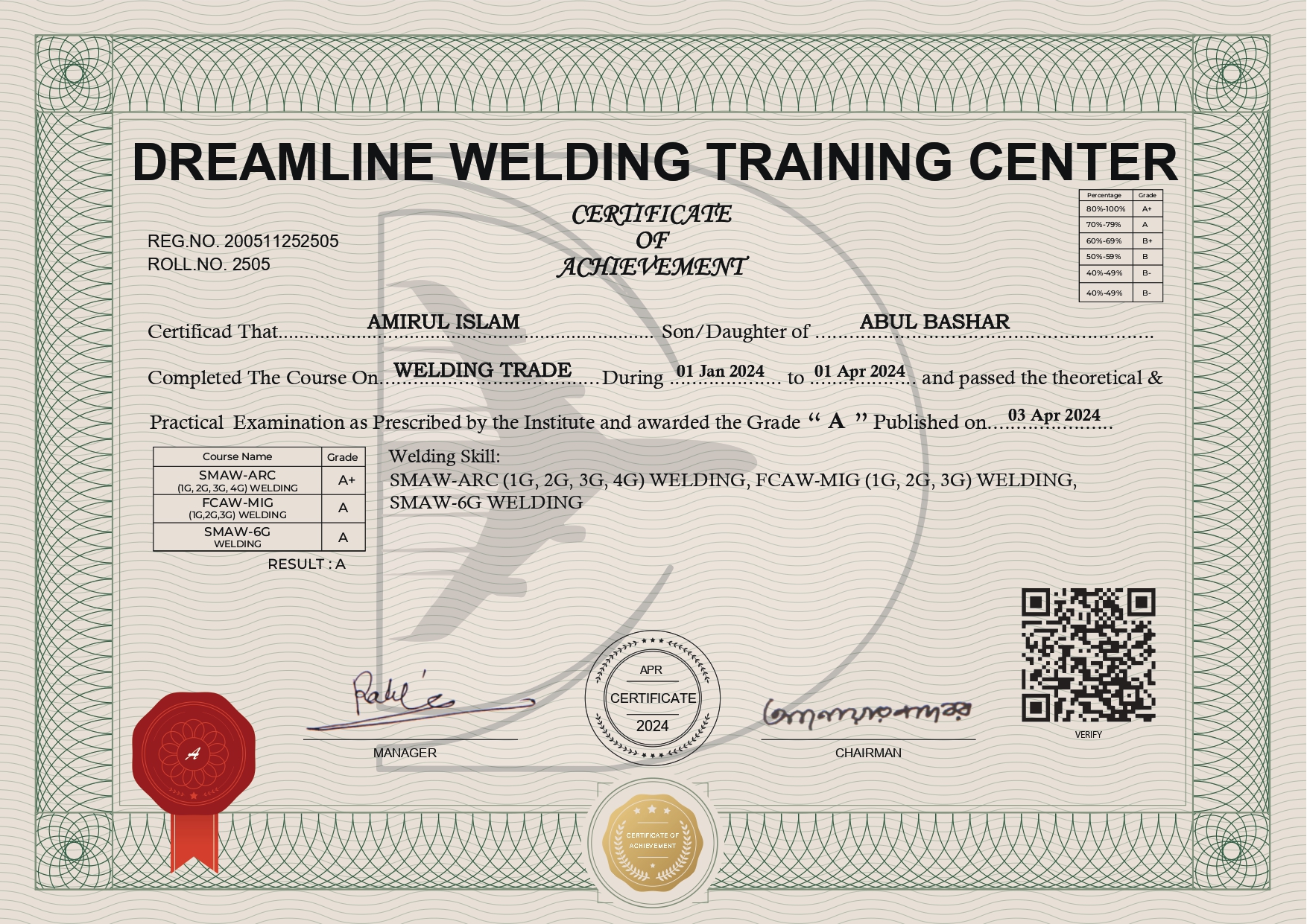 SKILL: SMAW-ARC (1G, 2G, 3G, 4G) WELDING, FCAW-MIG (1G, 2G, 3G) WELDING,